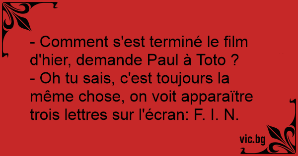 - Comment s'est terminé le film d'hier, demande Paul à Toto ?