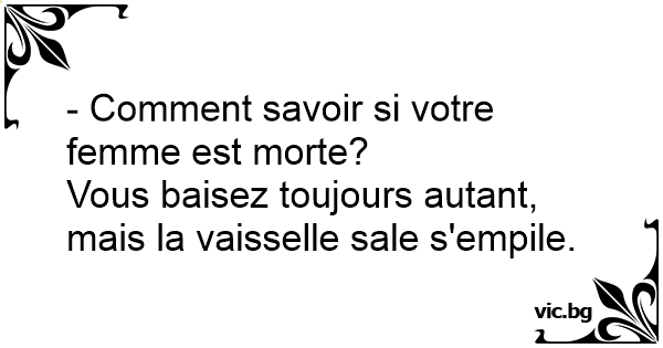 Død kone Hvordan opdager man at Ens kone er død? Hun knepper som Hun plejer, men Opvasken vokser og vokser!