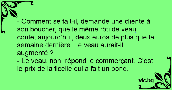 - Le veau, non, répond le commerçant. C’est le prix de la ficelle qui a fait un bond.
