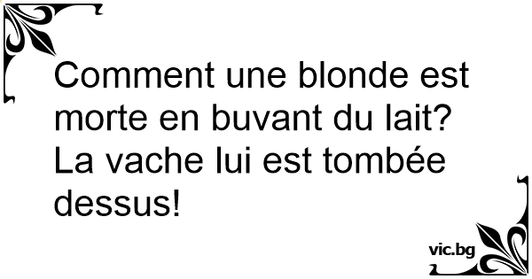 Comment une blonde est morte en buvant du lait? La vache lui est tombée dessus!