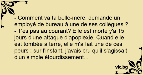 - Comment va ta belle-mère, demande un employé de bureau à une de ses collègues ?