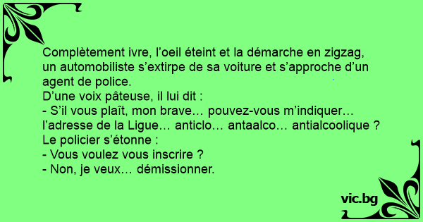 - S’il vous plaît, mon brave… pouvez-vous m’indiquer… l’adresse de la Ligue… anticlo… antaalco… antialcoolique ?