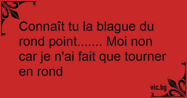 Connaît tu la blague du rond point....... Moi non car je n'ai fait que tourner en rond