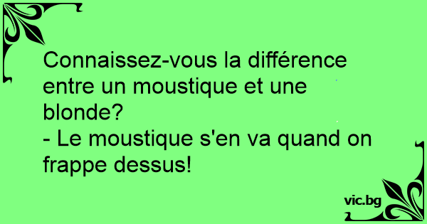 Vous savez quelle est la différence entre une blonde et un moustique ? Et bien le moustique arrête de sucer quand on lui tape sur le front.