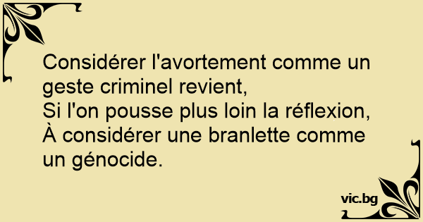 Considérer l'avortement comme un geste criminel revient,