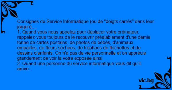 Consignes du Service Informatique (ou de "doigts carrés" dans leur jargon),...