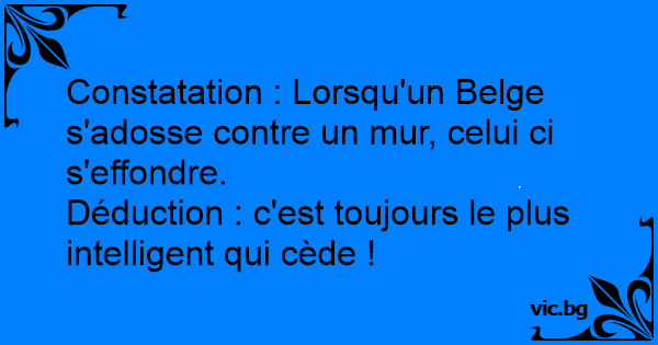 Constatation : Lorsqu'un Belge s'adosse contre un mur, celui ci s'effondre.