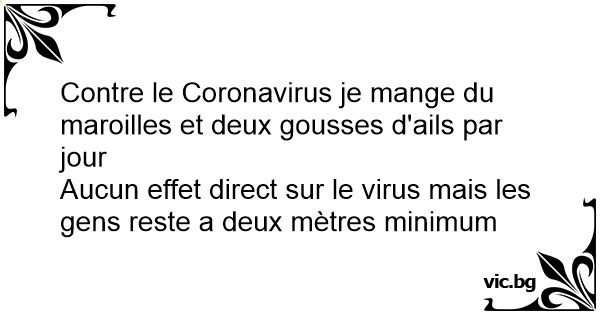 Contre le Coronavirus je mange du maroilles et deux gousses d'ails par jour Aucun effet direct sur le virus mais les gens reste a deux mètres minimum