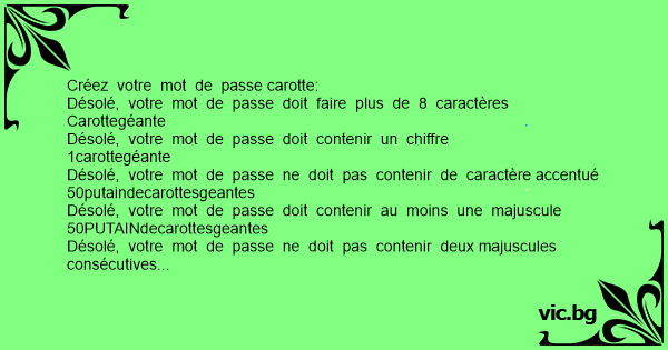 Désolé, votre mot de passe ne doit pas contenir deux majuscules consécutives