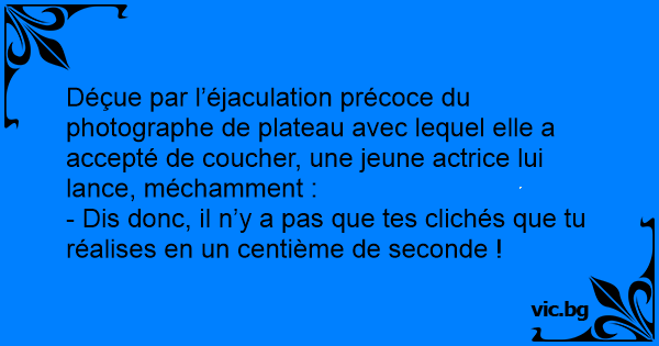 Déçue par l’éjaculation précoce du photographe de plateau avec lequel elle a accepté de coucher, une jeune actrice lui lance, méchamment :