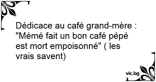 "Mémé fait un bon café pépé est mort empoisonné" ( les vrais savent)