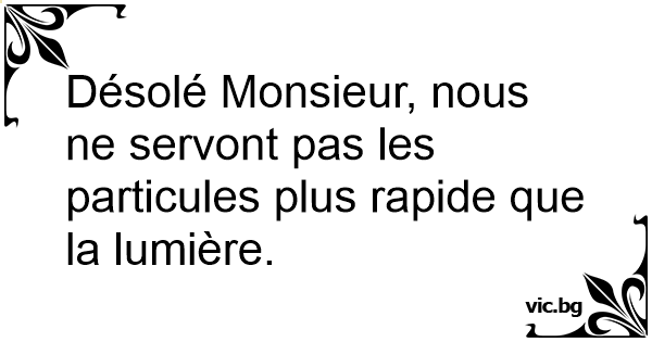 Désolé Monsieur, nous ne servont pas les particules plus rapide que la lumière.