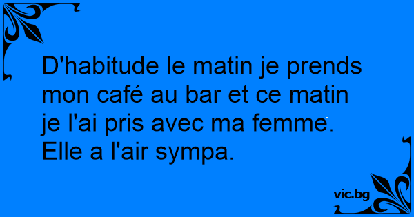D'habitude le matin je prends mon café au bar et ce matin je l'ai pris avec ma femme.