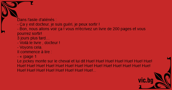 - Bon, nous allons voir ça ! vous m'écrivez un livre de 200 pages et vous pourrez sortir!