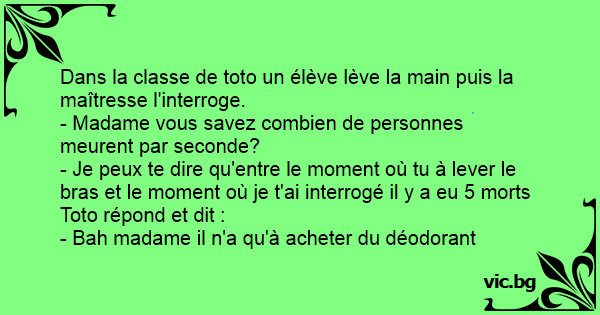 Dans la classe de toto un élève lève la main puis la maîtresse l'interroge.