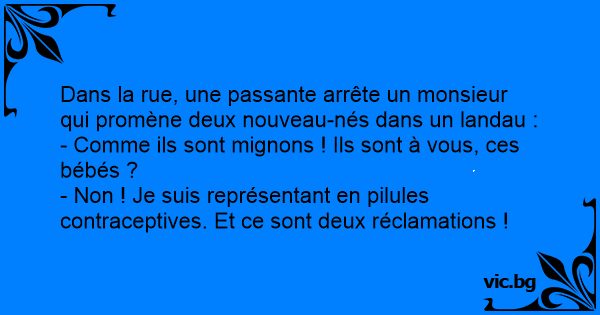 - Non ! Je suis représentant en pilules contraceptives. Et ce sont deux réclamations !