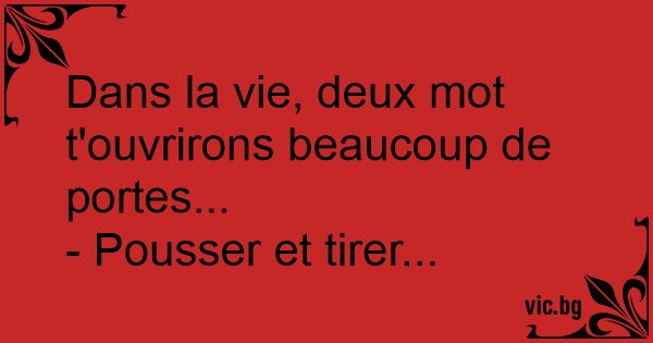 Dans la vie, deux mot t'ouvrirons beaucoup de portes...