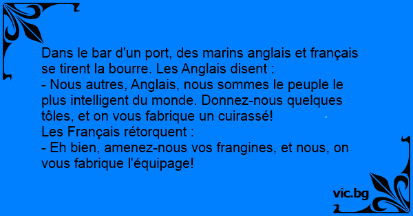 Dans le bar d'un port, des marins anglais et français se tirent la bourre. Les Anglais disent :