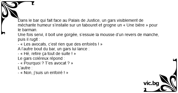 Dans le bar qui fait face au Palais de Justice, un gars visiblement de méchante humeur s’installe sur un tabouret et grogne un « Une bière » pour le barman.
