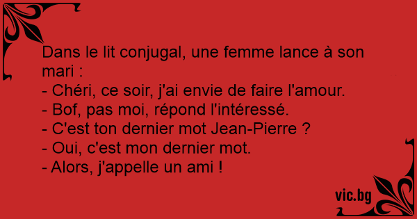 - Chéri, ce soir, j'ai envie de faire l'amour.