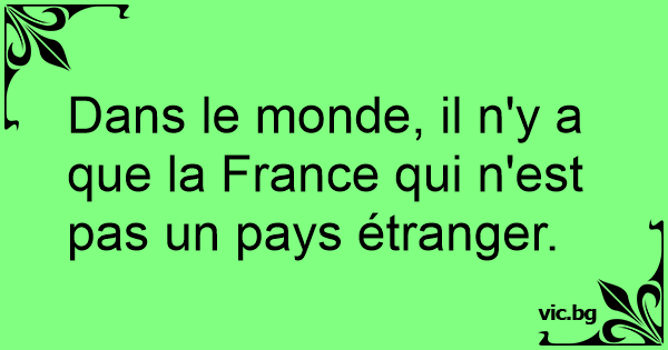 Dans le monde, il n'y a que la France qui n'est pas un pays étranger.