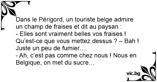 Dans le Périgord, un touriste belge admire un champ de fraises et dit au paysan :