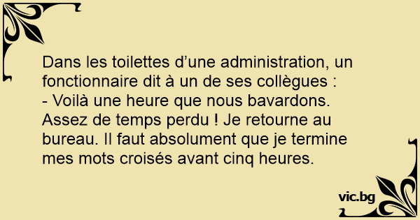 Dans les toilettes d’une administration, un fonctionnaire dit à un de ses collègues :