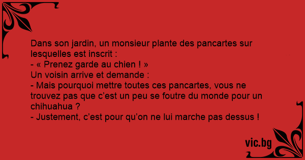 - Mais pourquoi mettre toutes ces pancartes, vous ne trouvez pas que c’est un peu se foutre du monde pour un chihuahua ?