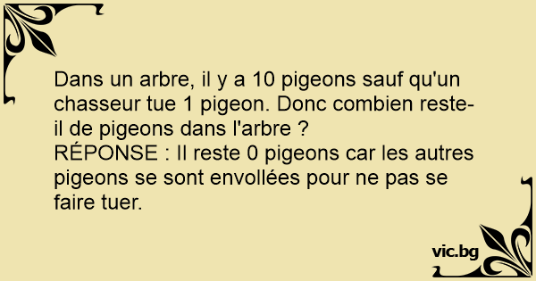 RÉPONSE : Il reste 0 pigeons car les autres pigeons se sont envollées pour ne pas se faire tuer.