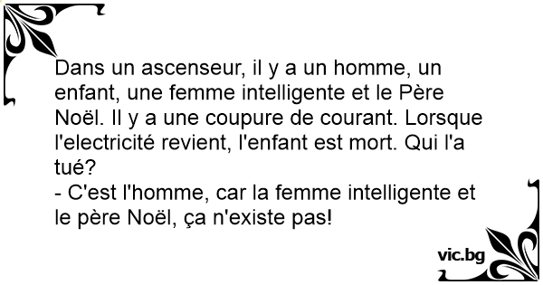 Dans un ascenseur, il y a un homme, un enfant, une femme intelligente et le Père Noël. Il y a une coupure de courant. Lorsque l'electricité revient, l'enfant est mort. Qui l'a tué?