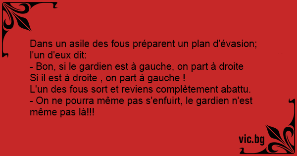 Dans un asile des fous préparent un plan d'évasion; l'un d'eux dit: