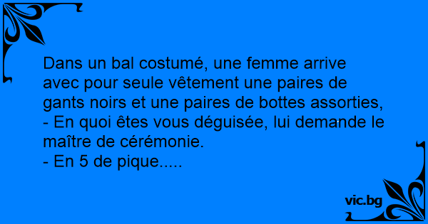 - En quoi êtes vous déguisée, lui demande le maître de cérémonie.