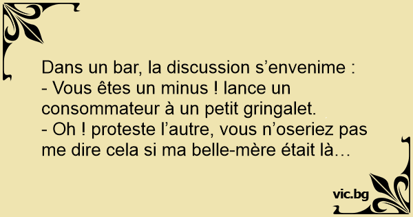 - Oh ! proteste l’autre, vous n’oseriez pas me dire cela si ma belle-mère était là…