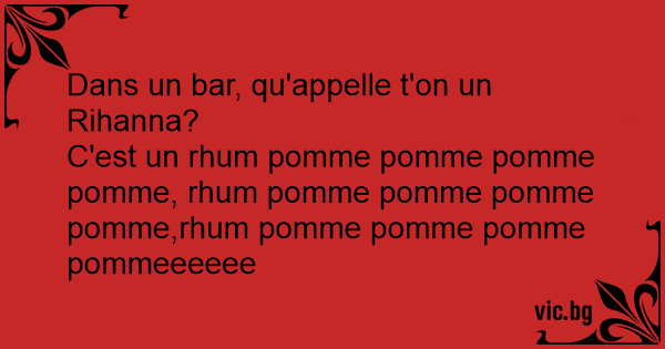 C'est un rhum pomme pomme pomme pomme, rhum pomme pomme pomme pomme,rhum pomme pomme pomme pommeeeeee