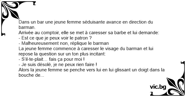 Arrivée au comptoir, elle se met à caresser sa barbe et lui demande: