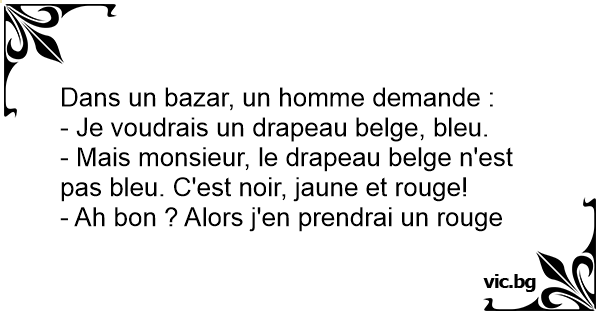 - Mais monsieur, le drapeau belge n'est pas bleu. C'est noir, jaune et rouge!
