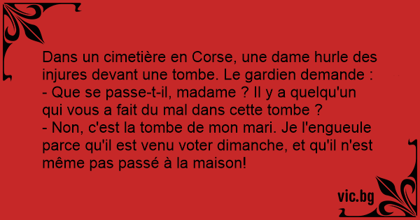 - Non, c'est la tombe de mon mari. Je l'engueule parce qu'il est venu voter dimanche, et qu'il n'est même pas passé à la maison!