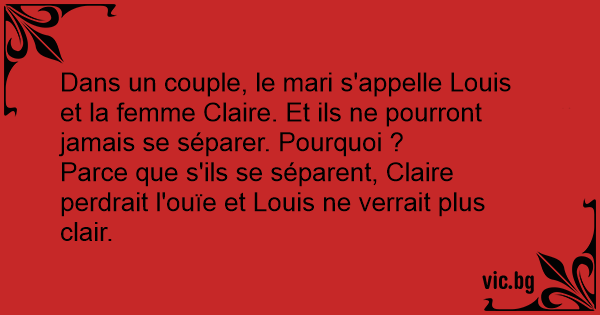 Dans un couple, le mari s'appelle Louis et la femme Claire. Et ils ne pourront jamais se séparer. Pourquoi ?