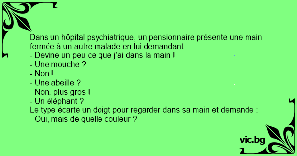 Dans un hôpital psychiatrique, un pensionnaire présente une main fermée à un autre malade en lui demandant :