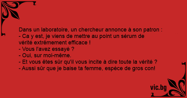 - Ca y est, je viens de mettre au point un sérum de vérité extrêmement efficace !
