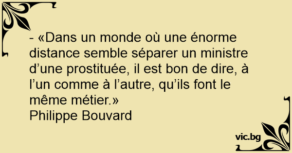 - «Dans un monde où une énorme distance semble séparer un ministre d’une prostituée, il est bon de dire, à l’un comme à l’autre, qu’ils font le même métier.»