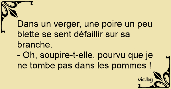 - Oh, soupire-t-elle, pourvu que je ne tombe pas dans les pommes !