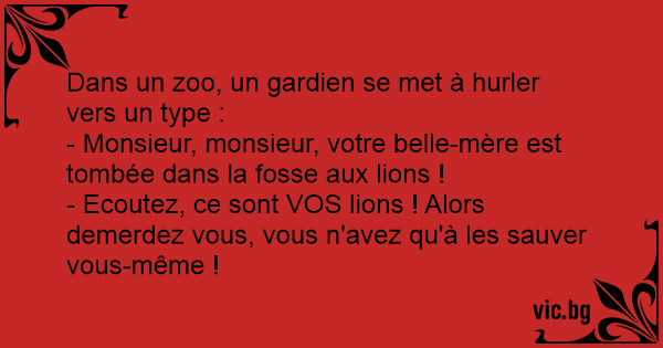 - Monsieur, monsieur, votre belle-mère est tombée dans la fosse aux lions !