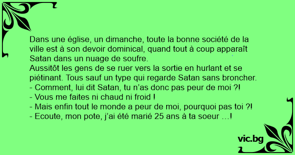 - Comment, lui dit Sатаn, tu n’as donc pas peur de moi ?!