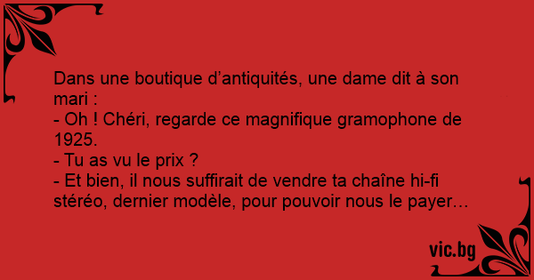 Dans une boutique d’antiquités, une dame dit à son mari :