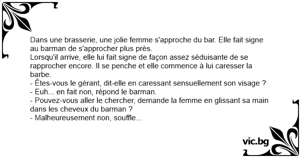 - Pouvez-vous aller le chercher, demande la femme en glissant sa main dans les cheveux du barman ?