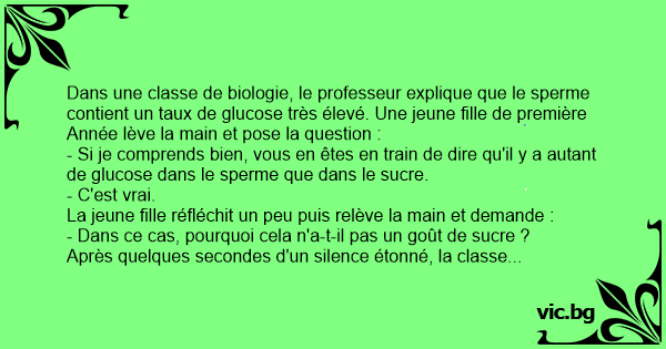 Dans une classe de biologie, le professeur explique que le sperme contient un taux de glucose très élevé. Une jeune fille de première