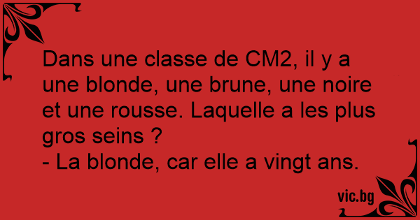 Dans une classe de CM2, il y a une blonde, une brune, une noire et une rousse. Laquelle a les plus gros seins ?