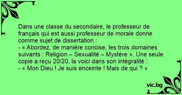 Dans une classe du secondaire, le professeur de français qui est aussi professeur de morale donne comme sujet de dissertation :