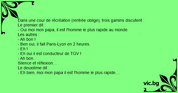 - Eh bien, moi mon papa il est plus rapide que vos papas !